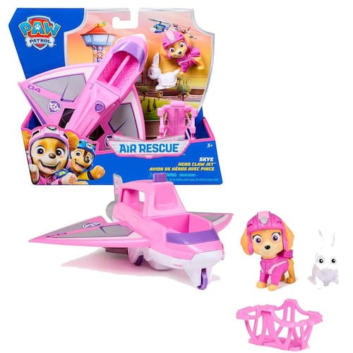 Entre em ação com Jato de Resgate com Boneca Skye Patrulha Canina Prenda Skye na cabine e decole para salvar o coelho em apuros, usando a garra e a cesta de resgate. Skye veste sua jaqueta e capacete rosa, igual ao desenho. Ideal para crianças e fãs de Patrulha Canina, este brinquedo estimula a imaginação e as habilidades motoras