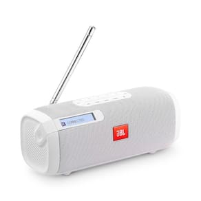 O JBL Tuner FM é uma caixa de som portátil, com Bluetooth e poderoso e cristalino som de rádio FM. Você pode agora apreciar suas músicas e estações de rádio favoritas em qualquer lugar, graças ao seu design compacto e uma bateria recarregável, que permite até oito horas de reprodução. Ele também possui uma tela de rolagem de fácil visualização, com LCD e iluminação de fundo, e cinco botões predefinidos diretos FM, para sintonizar rapidamente suas estações favoritas, o que o torna seu companheiro ideal para ouvir música por aí.