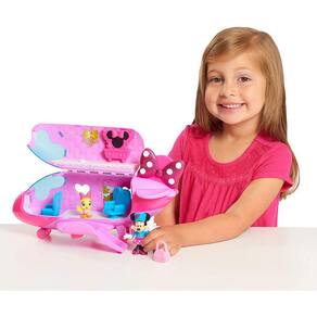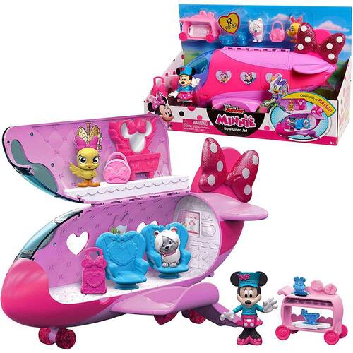 . Jet set com Minnie Mouse da Disney Junior e o Minnie Bow-Liner Jet! Minnie viaja em grande estilo com este playset de 12 peças. Abra o Bow-Liner Jet da Minnie para revelar um playset de dois níveis, com dois assentos removíveis e uma área de vaidade de topo para Minnie desfrutar. O Minnie Bow-Liner Jet inclui uma figura exclusiva e articulada de Minnie Pilot, uma figura de Cuckoo Loca, uma figura snowpuff, uma mala, uma caixa de chapéu, carrinho de bebidas com bandeja, uma xícara de chá e um cupcake. Abre para revelar um playset de dois níveis! Figura exclusiva de Minnie Mouse vem vestida com sua roupa de piloto. Bow-Liner Jet rodas realmente rolar e voltar área de carga abre para armazenar bagagem! Idade 3+