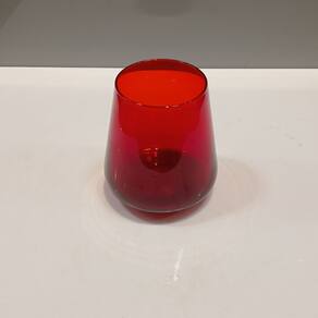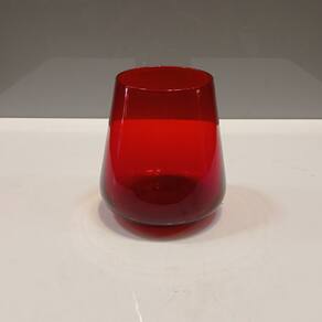 Altura: 10,2 cm Largura: 9 cm Profundidade: 9 cm Espessura: ,3 cm Peso: 0,17 Kg Diâmetro da Base: 8,5 cm Diâmetro do Topo: 6,2 cm Material: Vidro Cor: Vermelho