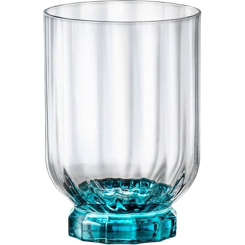 Altura: 11,2 cm Largura: 7 cm Profundidade: 8 cm Espessura: ,2 cm Peso: 0,23 Kg Diâmetro da Base: 5 cm Diâmetro do Topo: 7,5 cm Material: Vidro Cor: Transparente/Azul
