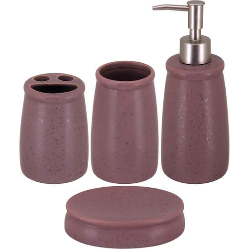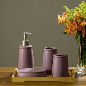 Jg Banheiro Cerâmica Rosa 4pç O jogo de banheiro em cerâmica possui peças essenciais, práticas e funcionais para ter um banheiro organizado, arrumado, estilizado e com muito charme e beleza. Dimensões da Embalagem: Altura: 8cm Largura: 25,5cm Profundidade: 22,5cm Peso:
