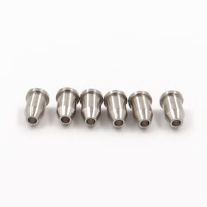Jogo de Buchas traseiras cromadas para passagem de cordas nas instalações de pontes que possibilitem a passagem das cordas por trás do instrumento, estilo telecaster, ficando um acabamento premium.