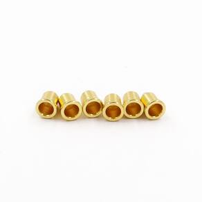 Jogo de Buchas traseiras Douradas para passagem de cordas nas instalações de pontes que possibilitem a passagem das cordas por trás do instrumento, estilo telecaster, ficando um acabamento premium.