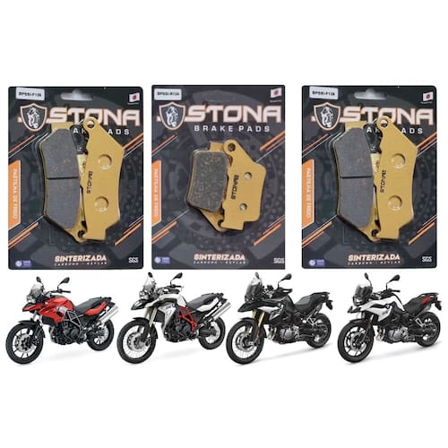 KIT COMPLETO PASTILHAS STONA SINTERIZADA KEVLAR E CARBONO APLICAÇÃO: BMW -F 800GS 2008 até 2020 -F 800GS Adventure 2012 até 2018 Itens inclusos: 03 pares de pastilhas para 3 discos de freio Produzida através do processo de sinterização originado pela composição de pós metálicos Entre eles cobre aço, Bronze, Cerâmica, Grafite, CARBONO E KEVLAR compactado por pressão Submetido a temperatura elevada ligeiramente menores que sua temperatura de fusão Este processo cria uma peça única e sólida, Formando um bloco homogêneo da massa, Aplicado a uma placa de aço carbono. Desenvolvida por engenheiros japoneses e fabricado na China. -Excelente desempenho. -Maior tolerancia as altas temperaturas em frenagens longas e curtas. -Aquecimento rápido e frenagem precisa e mais segura. -Maior segurança em dias de chuva -Baixo ou nenhum ruido -Oferece maior durabilidade. -Efeciencia e sensibilidade durante a frenagem. -Menor desgaste do conjunto pastilhas e discos. -Economia e menor esforço para o sistema de freio. -Dianteira REF PTZ209GT - F126 90-FM209/2-2 / Traseira Ref PTZ213 - 90-FM208-2 Codigo do produto: 2x SKU 1139 - PASTILHA DIANTEIRA SINTER F126 - 02 CARTELAS 1x SKU 1141 - PASTILHA TRASEIRA SINTER R124 Com duvidas? Nos escreva que te responderemos o mais rápido possível! Box Racing - Venda Autorizada Stona Brake Pads