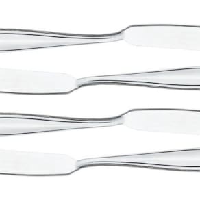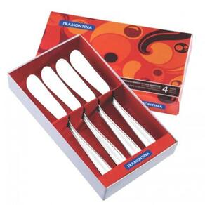 66906/730 Conteúdo Conjunto de espátulas em aço inox para manteiga 4 pç. Laguna. Orientações Gerais Durante a lavagem, use apenas sabão ou detergente e uma esponja macia. Outros tipos de produtos como palha de aço, poderão riscar ou prejudicar o brilho dos talheres. Enxágue bem cada peça a fim de remover totalmente os resíduos dos produtos de limpeza,pois, por serem abrasivos, podem prejudicar o inox. Sempre que possível, use água quente, pois renova o brilho do talher. Após a lavagem, enxugue imediatamente os talheres, caso contrário, as substâncias químicas da água (cloro) poderão causar manchas. Evite atrito entre os talheres durante o processo de lavagem e no armazenamento, para mantê-los sem riscos. Evite o contato das peças com superfícies quentes. Elas provocam a descoloração do produto. Não guarde os talheres em locais úmidos. A umidade também provoca manchas. Ao usar a lava-louça, recomendamos retirar os talheres logo que tenha terminado o ciclo ''enxaguar'', a fim de que sejam secados manualmente. Benefícios do Produto 1. Peças totalmente feitas de aço inox, altamente duráveis, mantêm suas características originais, preservando a beleza, a higiene e a durabilidade do material. 2. Acabamento em brilho, com detalhes no cabo. 3. Próprias para uso diário combinam com qualquer ambiente. 4. Podem ser lavadas diariamente na máquina de lavar louças.
