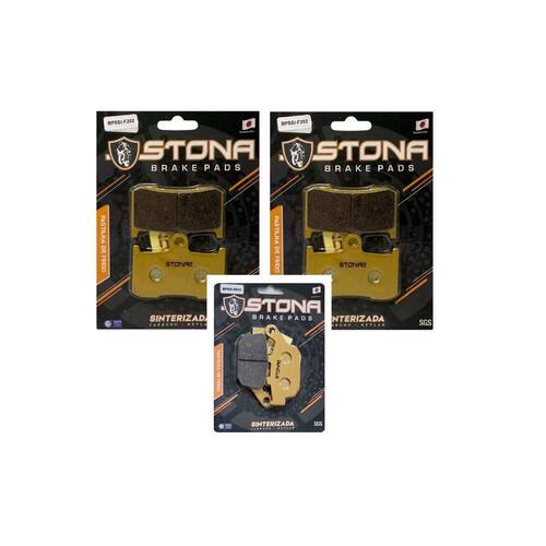 KIT COMPLETO PASTILHAS STONA SINTERIZADA KEVLAR E CARBONO Aplicação: KAWASAKI Z 800 2013 até 2017 Z 900 2017 até 2021 Itens inclusos: 03 pares de pastilhas para 3 discos de freio Produzida através do processo de sinterização originado pela composição de pós metálicos Entre eles cobre aço, Bronze, Cerâmica, Grafite, CARBONO E KEVLAR compactado por pressão Submetido a temperatura elevada ligeiramente menores que sua temperatura de fusão Este processo cria uma peça única e sólida, Formando um bloco homogêneo da massa, Aplicado a uma placa de aço carbono. Desenvolvida por engenheiros japoneses e fabricado na China. -Excelente desempenho. -Maior tolerancia as altas temperaturas em frenagens longas e curtas. -Aquecimento rápido e frenagem precisa e mais segura. -Maior segurança em dias de chuva -Baixo ou nenhum ruido -Oferece maior durabilidade. -Efeciencia e sensibilidade durante a frenagem. -Menor desgaste do conjunto pastilhas e discos. -Economia e menor esforço para o sistema de freio. -Ref dianteira AP Racing 382 90-FM347 / Traseira 90-FM140-2 - PTZ140 - AP Racing 481 Codigo do produto: 2x SKU 333 - PASTILHA DIANTEIRA SINTER F202 - 02 CARTELAS 1x SKU 2347- PASTILHA TRASEIRA SINTER R033 Com duvidas? Nos escreva que te responderemos o mais rápido possível! Box Racing - Venda Autorizada Stona Brake Pads