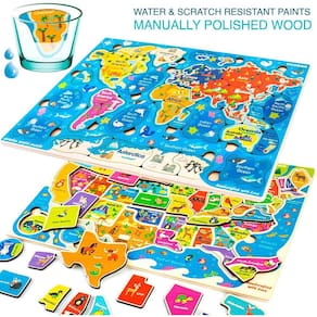 . Projetado em U.S.A por Adducate. Montado na Europa.BRINQUEDOS DE QUEBRA-CABEÇA DE MADEIRA EDUCACIONAL: Conjunto de 2 quebra-cabeças de madeira infantis coloridos para jogos divertidos e capitais de aprendizagem, lugares populares, animais com quebra-cabeça de mapas e países, oceanos com quebra-cabeça de mapa-mundo para meninos e meninas de 2 a 4 anos e upSTURDY E BRIGHT: graças à impressão direta em madeira nossos quebra-cabeças para crianças têm imagens e palavras vibrantes detalhadas. Não há mais papel que descasque ou impressão/envernizamento de seda de meia idade. Tintas resistentes a arranhões e água sobrevivem a qualquer experimento infantilUNITED STATES PUZZLES: jogos de aprendizagem para as crianças lembrarem de 50 estados americanos e suas capitais com 42 peças de quebra-cabeça polidas manualmente. Palavras e imagens precisas de lugares famosos, frutas, animais para grandes insights educacionaisWORLD MAP PUZZLE: crianças de 3 4 5 anos ou mais aprendem sobre o nosso mundo com 38 grandes peças de quebra-cabeça de madeira com países, oceanos, animais selvagens e marinhos. quebra-cabeças melhoram a coordenação mão-olho de meninos e meninas, cultivam a paciência do seu filho e resolvem capacidadesEUROPEAN &. US Safety: Crianças pré-escolares educacionais quebra-cabeças de madeira feitas na Europa de materiais de alta qualidade 100% seguros. US GREENGUARD Children &. Schools Certification for paint, FSC compliant wood Safety Standards for the US &. EU. Certificados ASTM,EN-71,CE