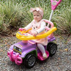 A criança aproveita momentos de lazer com total segurança, graças ao anel de proteção que levanta, facilitando o acesso. O Jip Jip Menina é fabricado com materiais de qualidade, acabamento reforçado e detalhes ergonômicos que garantem conforto real para os pequenos.
