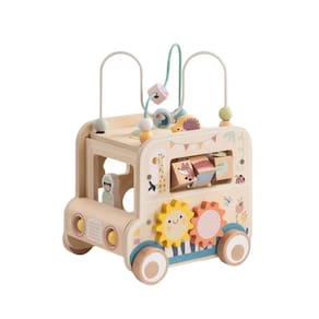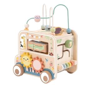 Jipe do Explorador em Madeira Tooky Toy ou Versatile Hunting Vehicle, em seu nome original, é como um cubo de atividades multifuncional, projetado para crianças pequenas, geralmente bebês e crianças em idade pré-escolar. O Jipe do Explorador em Madeira Tooky Toy tem um tema lúdico de animais e natureza em tons pastel, com ilustrações amigáveis ??como girafa, crocodilo, ouriço, papagaio e girassóis. Jipe do Explorador em Madeira Tooky Toy é feito de madeira e possui bordas lisas e arredondadas para a segurança da criança. Inclui engrenagens coloridas em formato de flores que podem ser giradas. O Jipe do Explorador em Madeira Tooky Toy é decorado com girassóis sorridentes, animais e pequenos insetos e apresenta um labirinto com contas coloridas. Um recorte de ouriço também está localizado no topo como parte do design interativo. Jipe do Explorador em Madeira Tooky Toy é equipado com rodas, permitindo que seja empurrado ou rolado facilmente por uma criança pequena. Além de tudo isso, o Jipe do Explorador em Madeira Tooky Toy também promove o desenvolvimento da coordenação motora fina, da coordenação olho-mão, do reconhecimento de cores e formas e da resolução de problemas iniciais. O Jipe do Explorador em Madeira Tooky Toy incentiva a brincadeira imaginativa com seu tema de animais e natureza e é ideal para o desenvolvimento infantil, oferecendo uma variedade de atividades envolventes em um formato compacto e visualmente atraente.