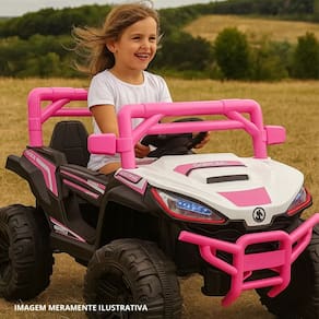 -Bateria 12V de longa duração -Carregador Bivolt -Movimentos Frente e Ré -Luzes de LED para mais estilo e segurança -Entrada USB, MP3 e sons integrados -Indicador de bateria e simulação de partida real -Portas que se abrem de verdade -Suporta até 30 kg -Design tipo UTV robusto e aventureiro -Cor: Rosa ou Laranja -Dimensões do produto: A 67 x L 65 x C 110 cm -Dimensões da embalagem do produto: A 39 x L 58 x C 100 cm -Peso: 16,5 kg -Marca: Bang Toys -Garantia: 3 meses