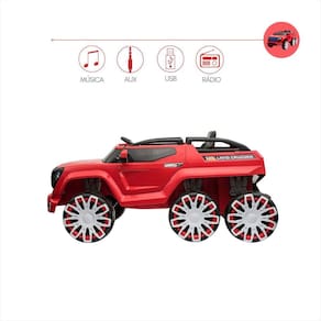 Desperte o espírito de aventura do seu filho com o incrível carro elétrico infantil 12v com design robusto, 6 rodas imponentes e detalhes que imitam carros off-road de verdade, esse super carrinho é o sonho de toda criança e o orgulho de qualquer pai. Com faróis de led, sons realistas de motor, entrada usb, bluetooth e até modo balanço, ele vai transformar qualquer passeio em uma verdadeira expedição cheia de emoção