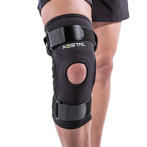 Joelheira Articulada Preto P A Joelheira Articulada Kestal possui articulações metálicas laterais com trava, que estabilizam o joelho e impedem a sua hiperextensão. Pode ser utilizada para conter a flexão do joelho através da inversão das dobradiças. Com fechamento duplo em tiras aderentes, proporciona maior firmeza e melhor ajuste.