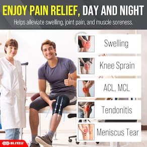 - Alívio da dor no joelho: lute contra BLITZU dor, recupere-se e volte ao jogo com as mangas do joelho. Nossa manga de compressão de joelho ativa os mecanismos naturais de alívio da dor do seu corpo, fornece suporte direcionado e promove uma recuperação mais rápida de ruptura do menisco, LCA, PCL, MCL, artrite, pós-cirurgia, inchaço, lesões esportivas, dores nas articulações, bem como problemas no joelho de corredores e saltadores.