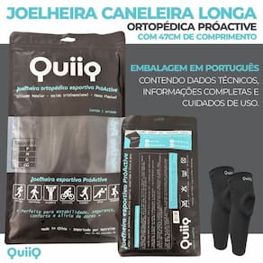 Joelheira Caneleira Longa PróActive QuiiQ com 47cm de comprimento. Oferecendo máxima compressão, estabilidade e conforto com sua dupla haste flexível de aço leve e anel de silicone patelar.