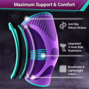 - Estabilização do joelho direcionada, alívio e suporte máximo: composto por estabilizadores laterais atualizados que se ajustam confortavelmente ao redor da articulação do joelho, tiras de silicone antiderrapantes e nylon 63,1%, borracha 30,4%, tecido de elastano 6,5% para evitar deslizamento e queda durante o uso diário e exercícios.