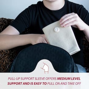 - Meninos e meninas podem usar facilmente a joelheira sem qualquer ajuda adicional. Com alguns passos para puxar a manga e ajustá-la, as crianças estão prontas para usar. Caso as crianças sintam que o suporte está escorregando durante a primeira vez de usá-lo, ajude-as a ajustar a posição da manga. As crianças podem usar o suporte de joelho no joelho esquerdo ou direito.