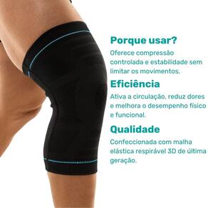 Seu design moderno e funcional proporciona apoio extra à articulação do joelho, auxiliando na redução de dores, prevenção de lesões e melhora da performance durante atividades físicas ou reabilitação.