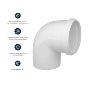 Muito mais estanqueidade. O Joelho 40mm faz parte da linha Sistema Predial de Esgoto SN Fortlev, com a qualidade Fortlev, todos os produtos da Linha (tubos, conexões, caixas sifonadas e ralos) são fabricados conforme norma ABNT NBR 5688. O Joelho 90 40mm Fortlev é composto por PVC na cor branca e projetado para escoamento em regime não contínuo à temperatura máxima de 45C.