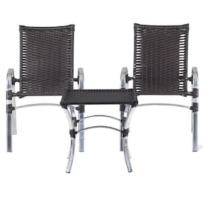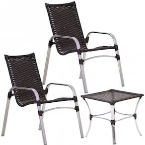 Jogo 02 Cadeiras Alumínio e Mesa Emily para Área Externa Piscina Jardim - Preto