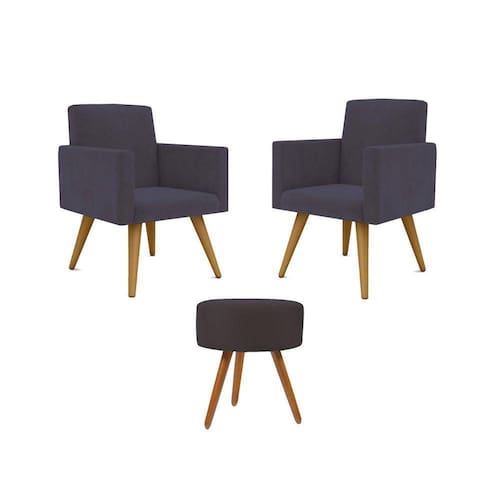 Jogo 02 Poltronas Decorativas + Puff Redondo Oferta Cor:cinza
