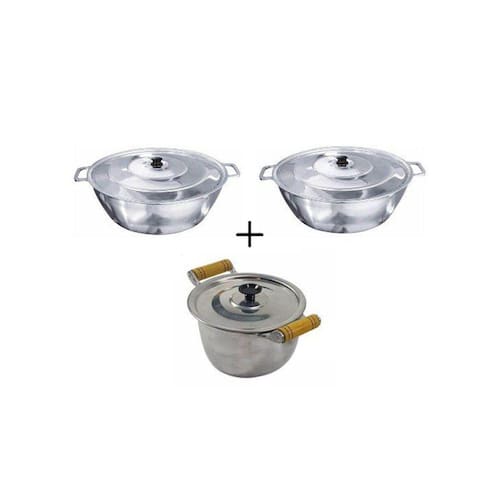 Jogo 02 Tacho Alça Alumínio + Caldeirão Alça Madeira Polidos