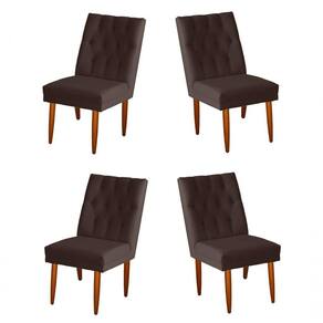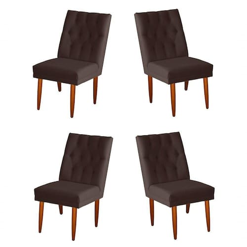 Jogo 04 Cadeiras De Jantar Estofada Cozinha Paris Suede Marrom Eli Móveis