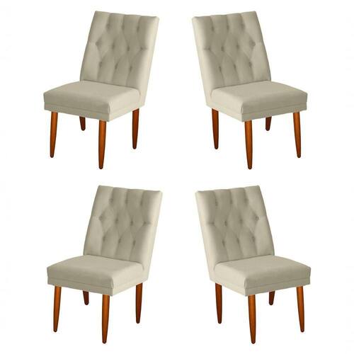 Jogo 04 Cadeiras De Jantar Estofada Cozinha Paris Suede Palha Eli Móveis