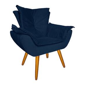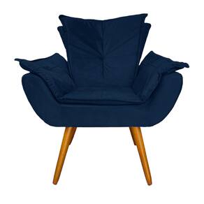 Jogo 1 Poltrona e 1 Puff Para Sala Comercial Apolo Suede Azul Marinho - LM DECOR