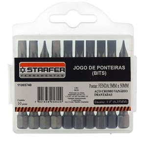 Jogo 10 bits ponta fenda 5mm para parafusadeira em aço cromo vanádio de alta qualidade