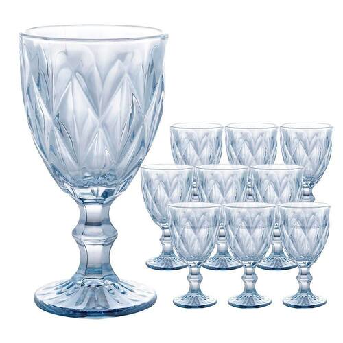 Jogo 10 Taças de Vidro Diamond Diamante Azul Metálico para Água 325ml Lyor