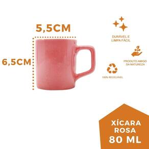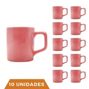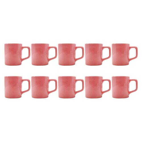 Jogo 10 Xícaras Café 80mL Cerâmica Rosa Mesa Posta