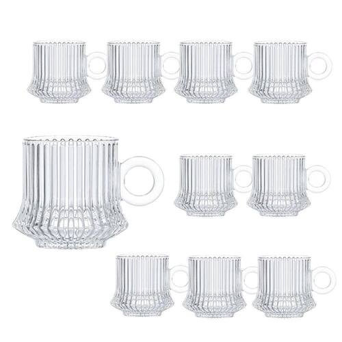 Jogo 10 Xícara de Café Caneca Vidro Robusta Lines 85ml Em Casa Tem