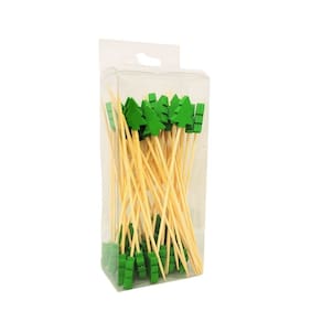 -02 Caixas com 50 Unidades Palito Aperitivo Decorado Pinheiro Natal Bambu 12cm