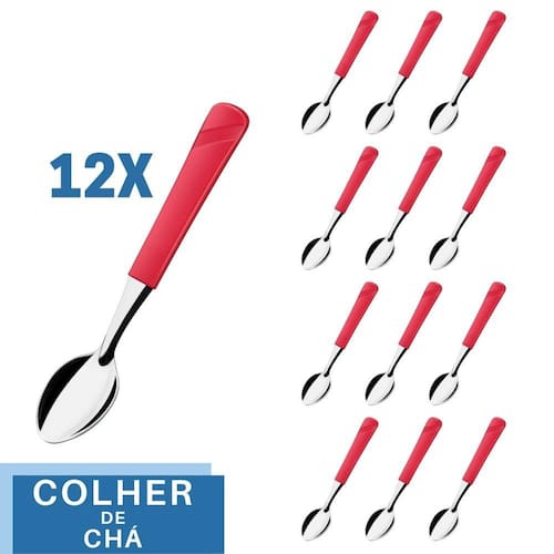 Conjunto de Colheres de Chá As colheres de chá da linha Luna são um conjunto elegante e funcional para qualquer momento em que um toque especial é necessário. Com um cabo vermelho vibrante feito de plástico de alta qualidade, essas colheres são confortáveis de segurar e fáceis de identificar em meio a outros utensílios de mesa. O aço inox das colheres garante que elas permaneçam brilhantes por um longo tempo, enquanto o design elegante torna as colheres uma adição atraente à sua coleção de utensílios de cozinha.