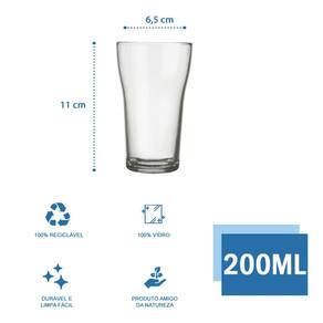 Jogo com 12 Copos De Vidro 200ml Boteco Nadir Figueiredo