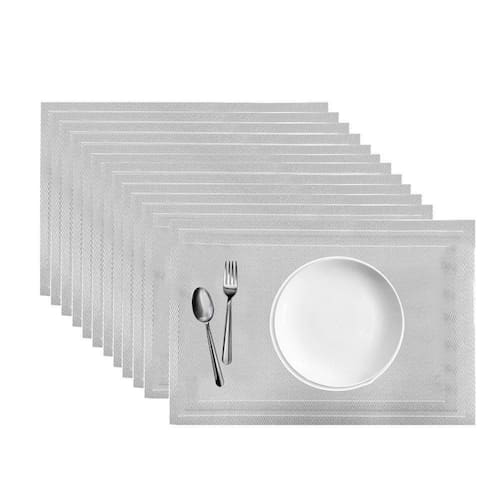 Jogo 12 Lugar Americano Retangular Mesa Prata 30x45cm PP Em Casa Tem