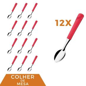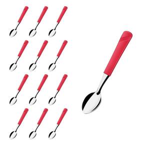 Jogo 12 Peças Colher de Chá Vermelho Aço Inox Luna Almoço