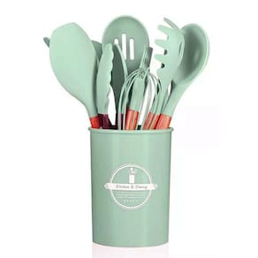 Um conjunto de 12 peças único, capaz de atender a todas as suas necessidades na cozinha. Utensílios resistentes ao calor, antibacteriano, livres de cola, atóxicos, antiaderentes, fáceis de limpar e armazenar. Os utensílios são totalmente livres de BPA.