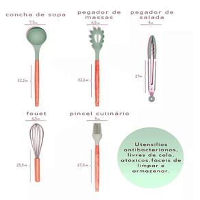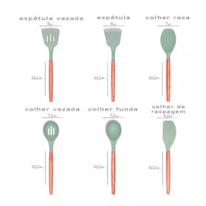Design: aderência, conforto e silicone térmico; Suavidade: maciez, proteção para panelas antiaderentes; Durabilidade: resistente a altas temperaturas, não deforma com facilidade e não resseca; Segurança: material atóxico, não cria bolor/fungos e possui silicone de alta qualidade que não deixa gosto ou odores nos utensílios; Conveniência: fácil de limpar, sem ruídos ao encostar em panelas e outros utensílios.