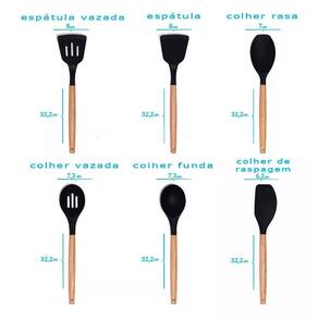 Composição: madeira e silicone térmico de alta qualidade Número de peças: 12 Temperatura suportada: de -30c até 230c Peso bruto: 950 g Tamanho da embalagem: 13 x 13 x 34 cm.