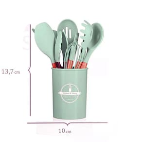 Jogo 12 peças utensílios silicone colher espátula Cor: verde claro Nome do produto: jogo 12 peças utensílios silicone colher espátula Conjunto 12 peças de utensilios de plastico de cozinha sendo 1 concha 2colheres 1 espatula reta 1 espatula pao duro