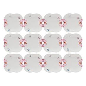 Jogo 12 Prato de Sobremesa Borboletas 19cm Porcelana Branco Wolff