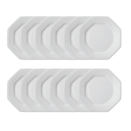 Jogo 12 Pratos de Sobremesa Prisma Brancos 20,5 cm Porcelana Schmidt