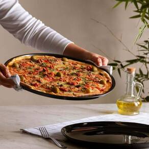 Jogo 12 Pratos Grandes de Vidro Black Friends Time Pizza Opalino 32cm Lyor