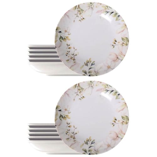 Perfeitos para compor mesas no dia a dia ou em ocasiões especiais, o kit Magnólia da Tramontina une delicadeza, elegância e modernidade. Com decoração floral em tons suaves de rosé, bege e verde sobre fundo branco, cada peça traz leveza e charme à mesa posta. O detalhe de leques no fundo adiciona um toque clássico e refinado, ideal para receber com sofisticação. Produzidos em porcelana de alta qualidade, o conjunto segue normas internacionais de resistência térmica e pode ser levado com segurança ao micro-ondas e à lava louças. Ideais para o uso doméstico ou em ambientes profissionais.