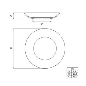 Dimensões de cada prato: 22cm (D) x 4cm (A);