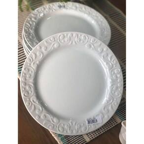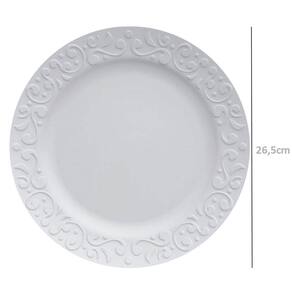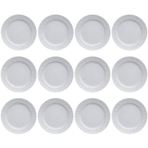 Jogo 12 Pratos Rasos Redondos 26,5cm em Porcelana com Relevo Tassel Germer Branco.