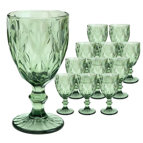 Jogo 12 Taças de Vidro Diamond Diamante Verde 300ml Água Class Home