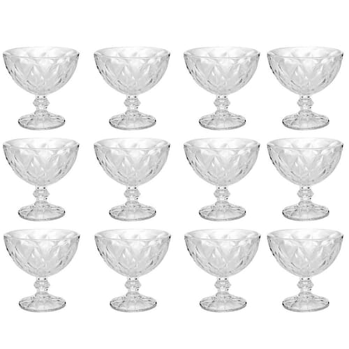 Jogo 12 Taças Diamond Lyor Sobremesa 250ml Vidro Transparente Tigela Pote Doces.